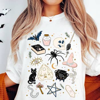 SKU: TSHIRT1291-WHT-XS Made in United States Aesthetic: Casual and Minimalist Fabric: 100% Ringspun Cotton Fit: Contemporary and Unisex Neckline: Round neck Occasion Theme: Everyday and Halloween Occasion: Day Party and Everyday Pattern: Graphic Season: Spring/Summer Sleeve Length: Short Sleeve Theme: Sci-Fi & Fantasy Product Language: English Weight: 113.4 g (4 oz) UPC: 691057114491 Product Materials: Organic, Plastic-free, and Recycled Packaging: Recyclable, Recycled, and Reduced Production: Ethically sourced and Fair trade