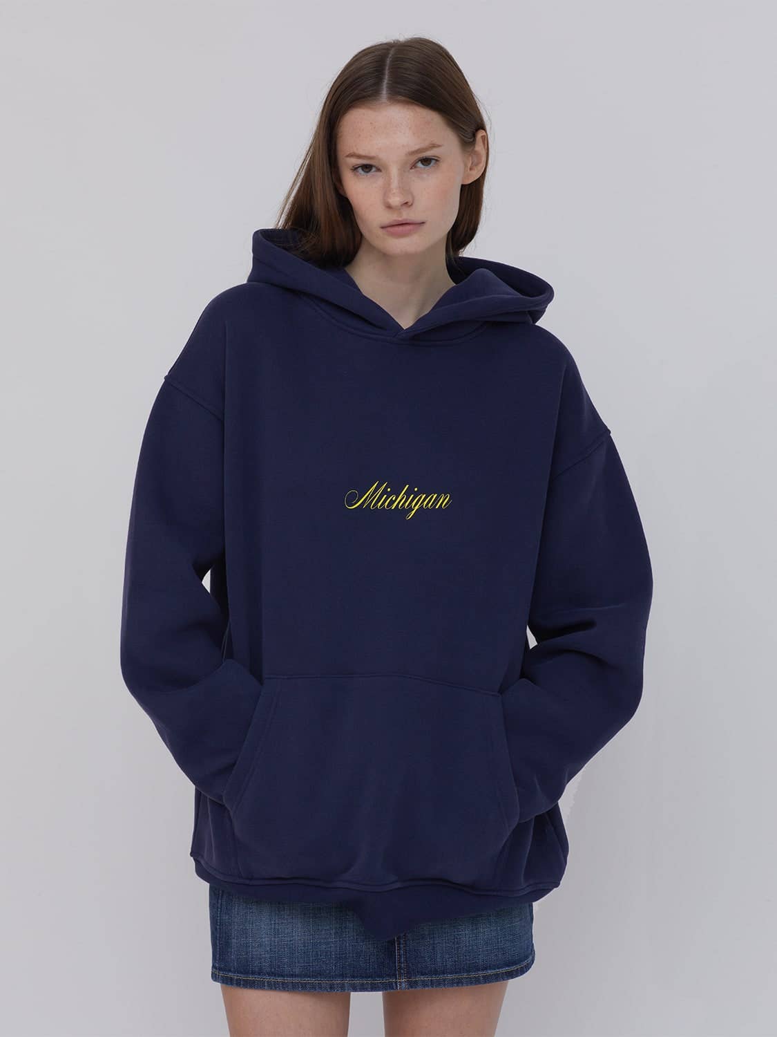 Navy wide-leg open-bottom sweatpants. Medium to heavy weight. Ultra cozy. For errands, lounging, gym, sports and recreation, class, travel, everyday wear. Side pockets. Elasticated waistband with drawstring. 52% Cotton 48% polyester. Wrinkle-resistant. Moisture-wicking. Easy to maintain. Pre-order. Ships soon. Size & Fit: Relaxed fit. Take your usual size or size down for a more fitted look.