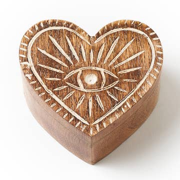 Mango Wood Evil Eye Heart Box