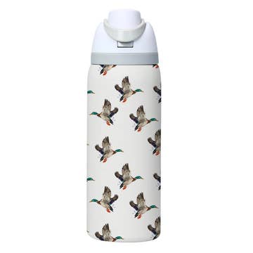 The Owala FreeSip 24 oz thermal bottle delivers flexible, on-the-go hydration. Built from durable 18/8 stainless steel with double wall construction and copper vacuum insulation, it keeps cold beverages chilled for hours. It features a dual-purpose threaded lid with a push-button locking mechanism, offering the option to sip through the built-in straw or tilt back to drink through the wide-mouth opening. Finished with a durable powder coated exterior for a secure, stylish grip. · 24 oz · 18/8 stainless steel · double wall · copper vacuum insulation · dual-purpose threaded lid · push-button locking mechanism · sip opening with built-in straw · powder coated finish · for cold beverages