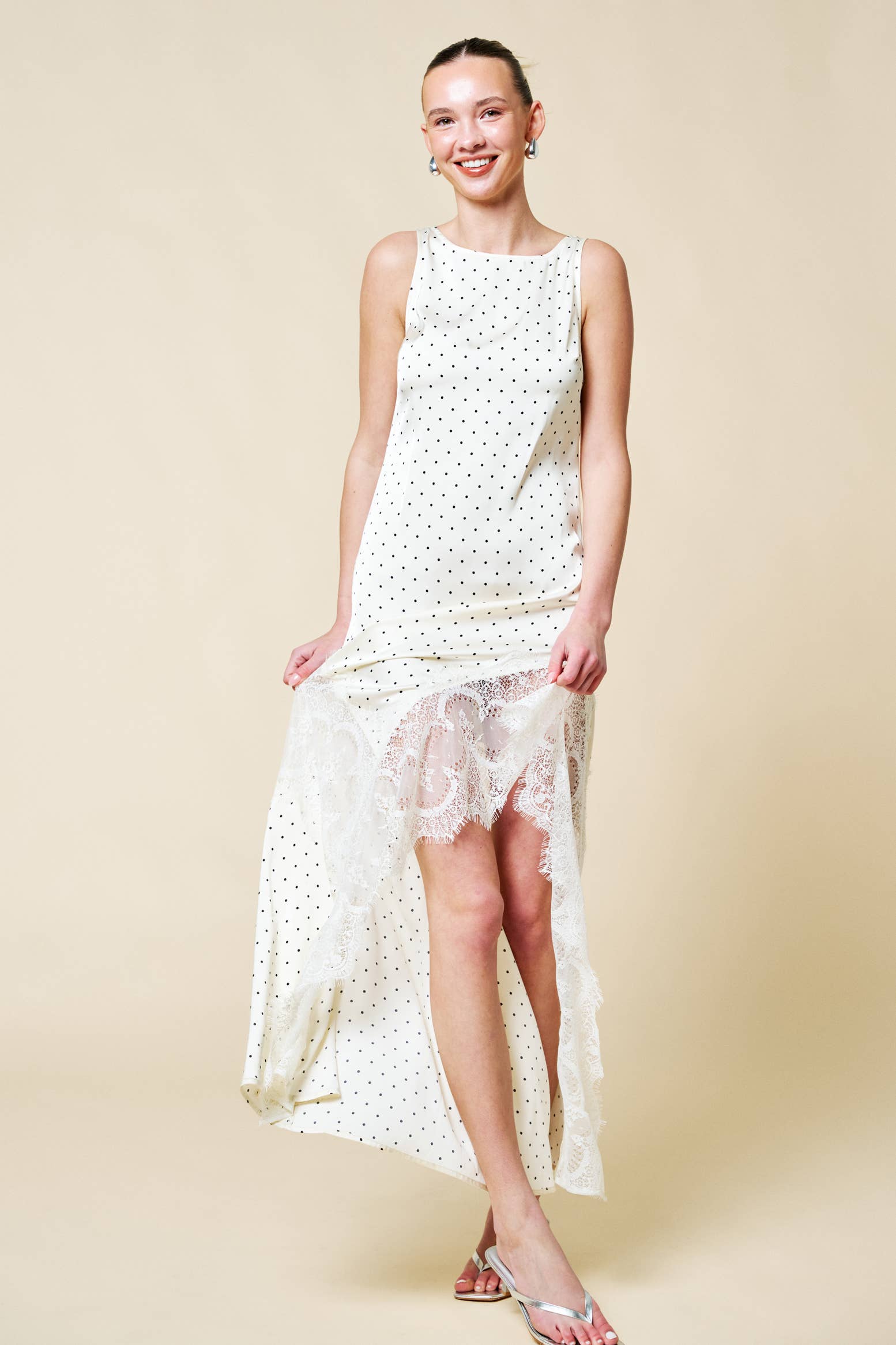Wholesale Whimsical Sleeveless Lace Midi Dress With Unattached Slip - 4609 BG/GRN ROSE