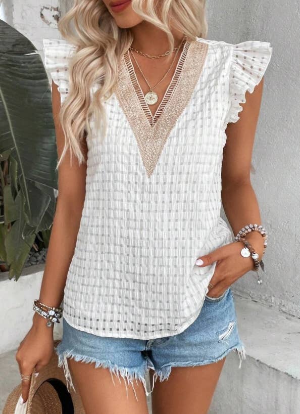 Wholesale Solid Crewneck Button Short-sleeved Cut-out Top