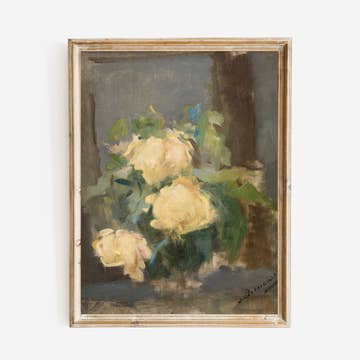 This Giclee fine art print is of a vintage still life painting of flowers and lemons in a soft color palette. PAPER PRINTS - Arrive unframed with no additional border around the image. Additional 1/2" border available by request. Printed on a cold press watercolor paper that is 100% cotton rag (300gsm). CANVAS PRINTS - Arrive unframed & unstretched with an additional 2” border. Printed on archival artisan canvas with an oxford weave/ natural canvas texture and a satin appearance like the original painting. > All art prints are individually wrapped in a plant-based clear bag that is certified compostable with a brand label ready for resale. > Purchase includes only the print; frames pictured are not included. > Colors may vary slightly from screen to in person.
