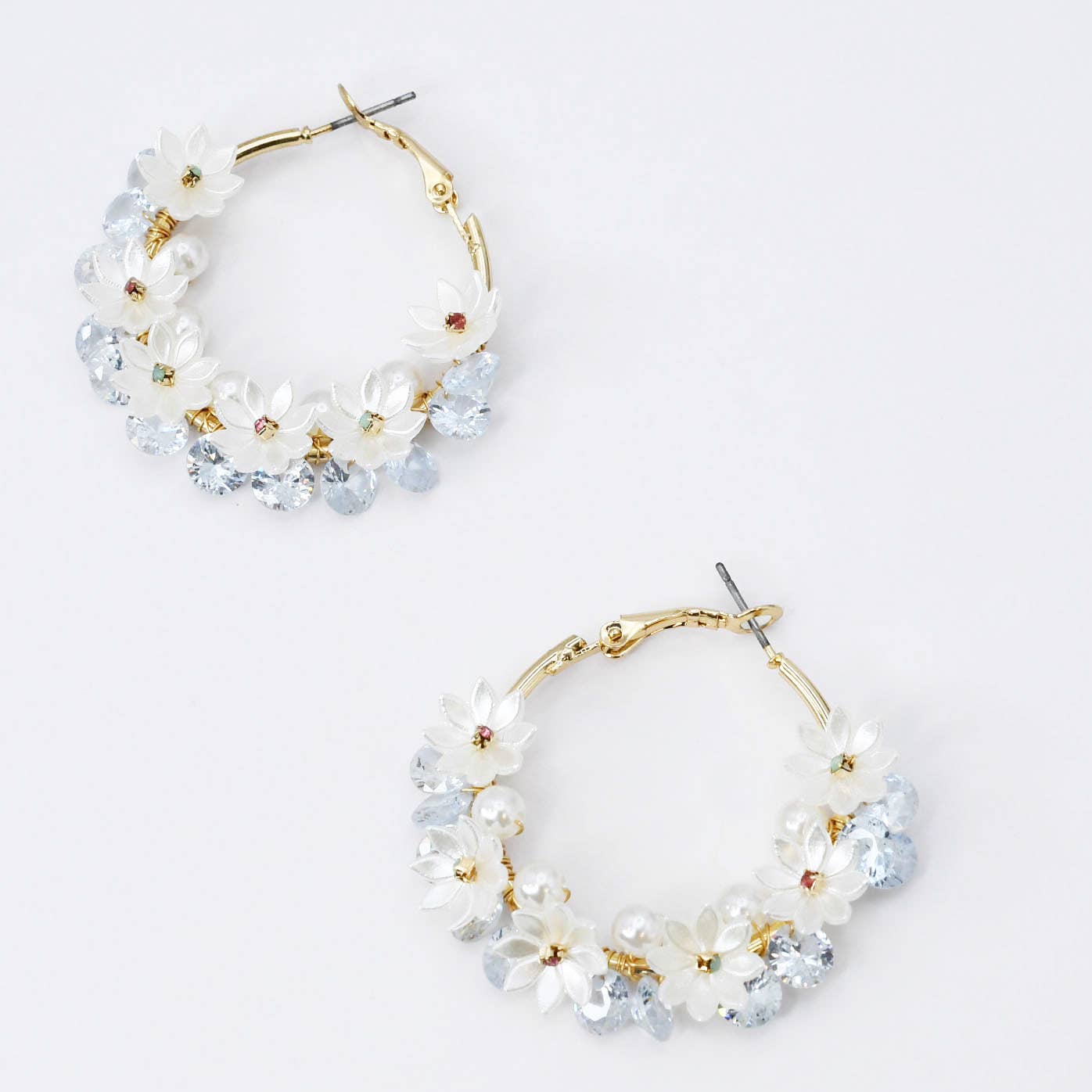 Rhinestone Cluster Flower Evening Clip On Earrings • Size : 0.8" X 0.9" • Clip On Dazzling cluster clip-on earrings with iridescent rhinestones in a floral-inspired design. Comfortable, no-piercing style ideal for weddings, parties, and special occasions.