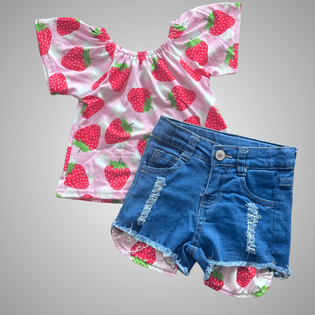 Girls Summer "Strawberry Season" Embroidery Short Set