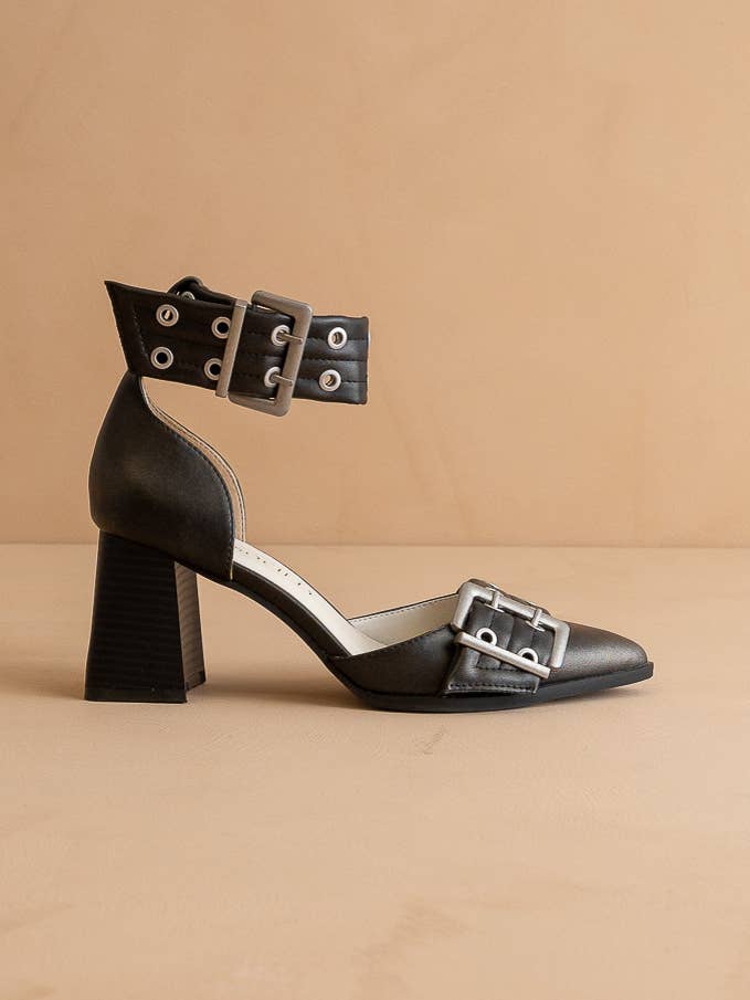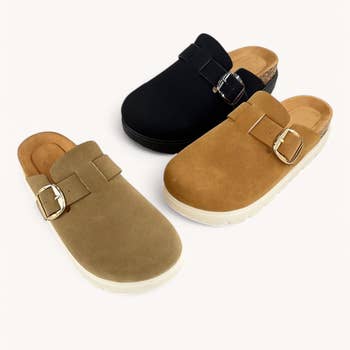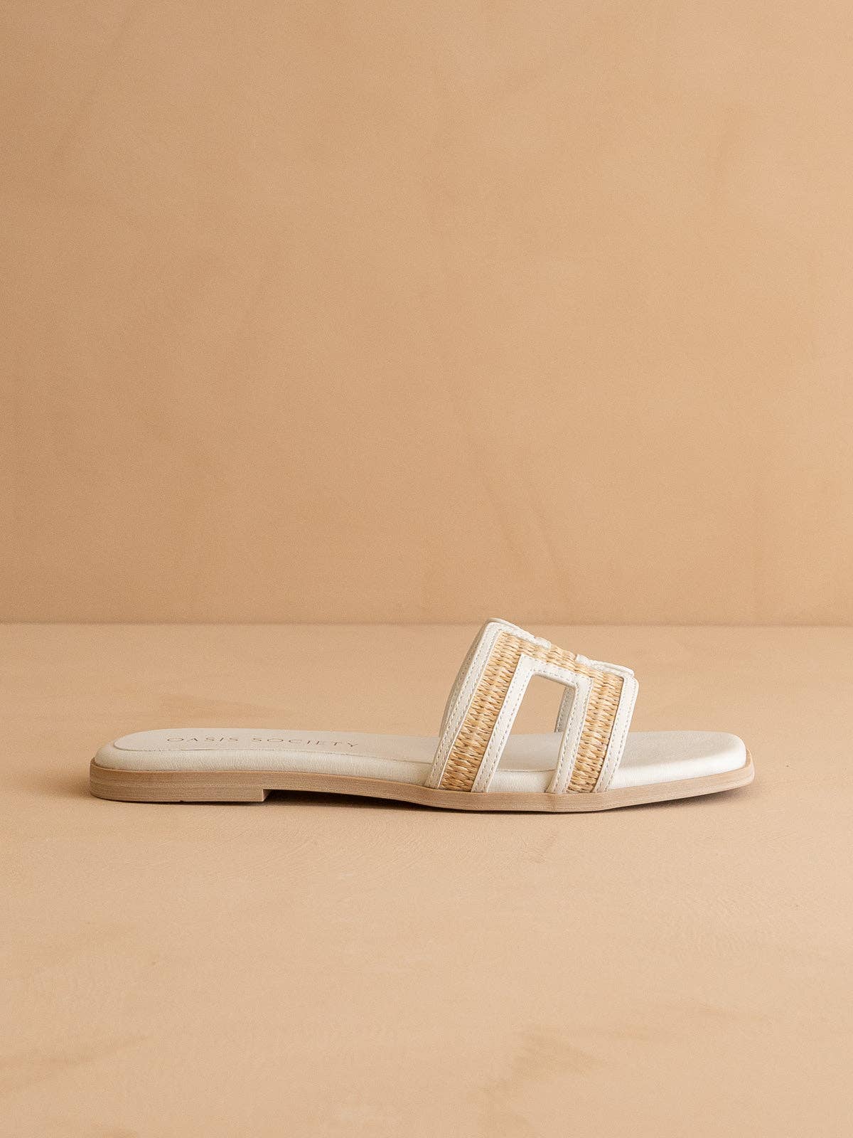 Western flair in an easy-to-wear slide. Featuring bold double buckle hardware and a comfortable slip-on design, this style blends laid-back ease with modern Western-inspired details. Crafted with atelier-selected materials for everyday versatility. Materials: * Upper Material: Vegan leather upper * Insole Material: Synthetic Insole * Sole or Heel Material: Rubber outsole Details: * Brand: Oasis Society * Shaft Height: * Heel Height: 0.75" * Types of Closures: slip on * Size Run: S