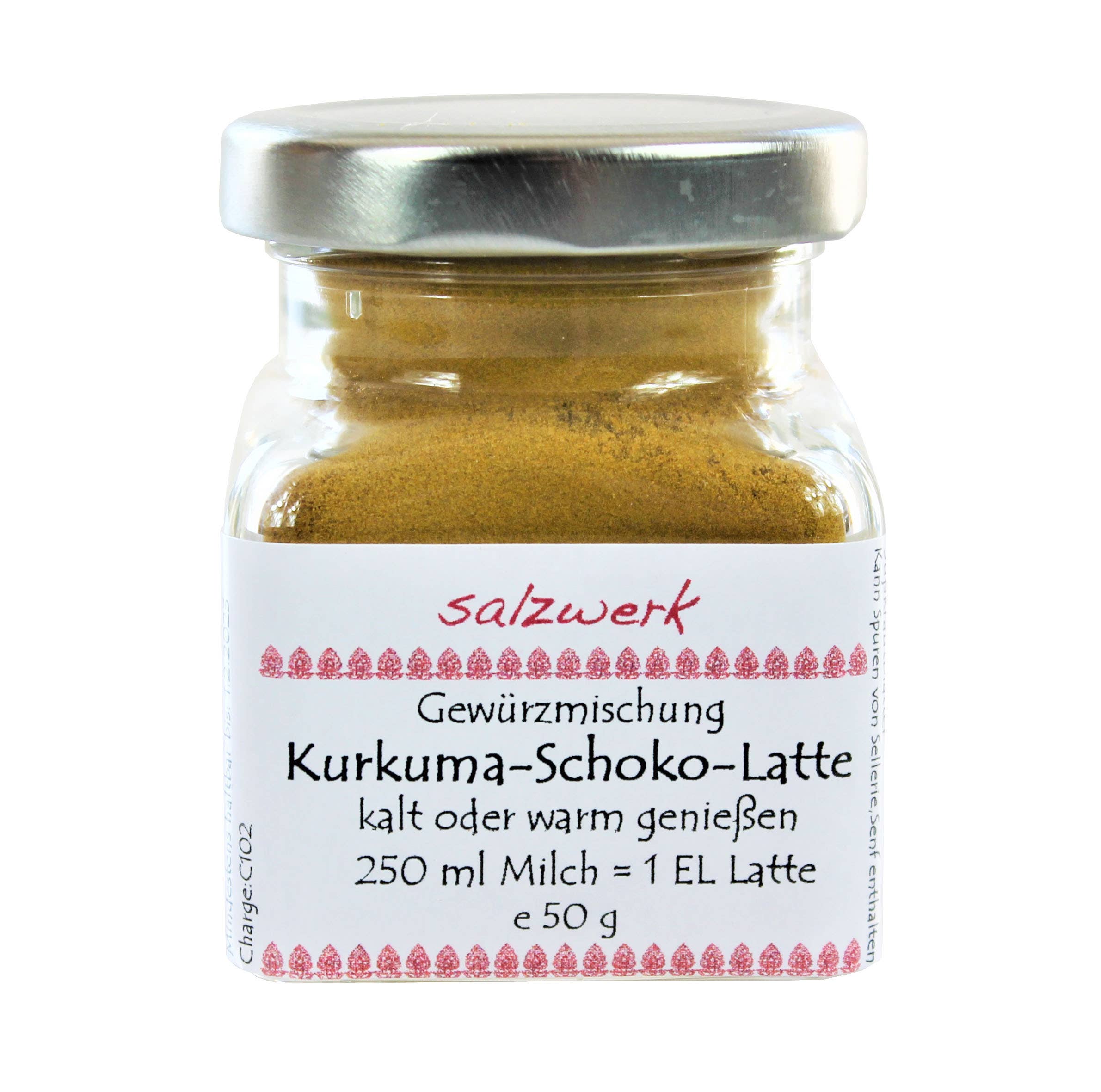 Turmeric chocolate latte mix 10 g in a test tube. You can enjoy this mixture cold or warm with 250 ml of milk = 1 tablespoon of latte. Ingredients: turmeric 60%, cocoa 10%, cinnamon, cardamom, nutmeg, ginger, sweet herb