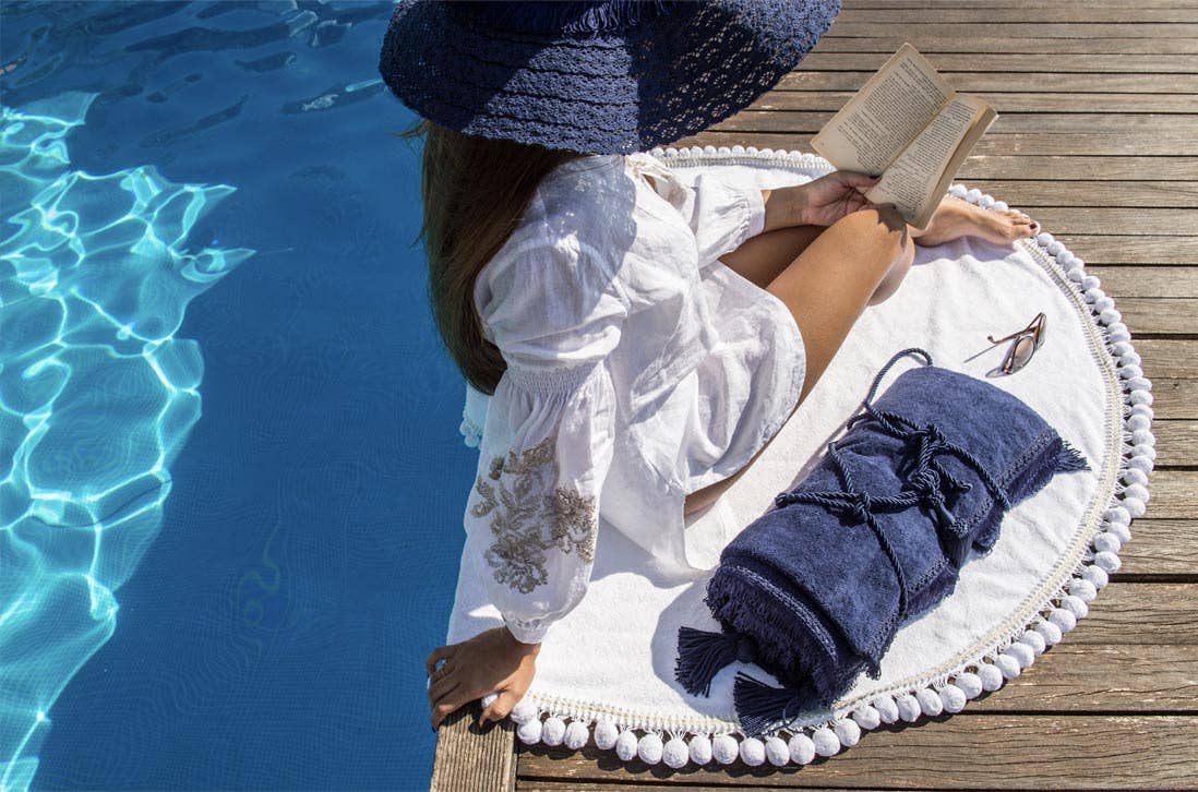 Beach towel in linen and cotton fabric Beige color and antique pink finishes Rectangular shape 150 cm x 80 Velvet ribbon border, trimmings and drawstring On request and depending on feasibility, some colors or details can be changed Giudecca model beach towel in linen and cotton fabric