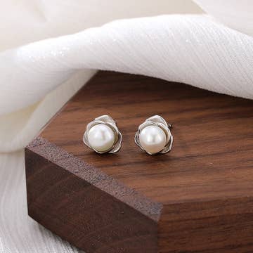 Mississippi Logo Pearl Stud Earrings