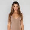 Crew Neck Long Sleeve Snap Button Rib Bodysuit 87% Polyester 13% Elastane STYLE#: JS284LB Color: Light Brown