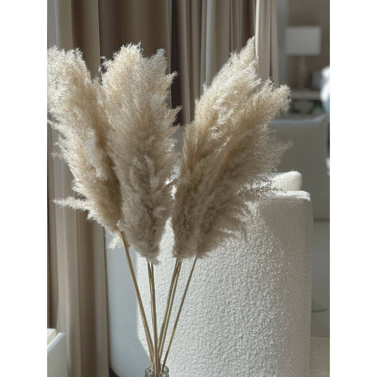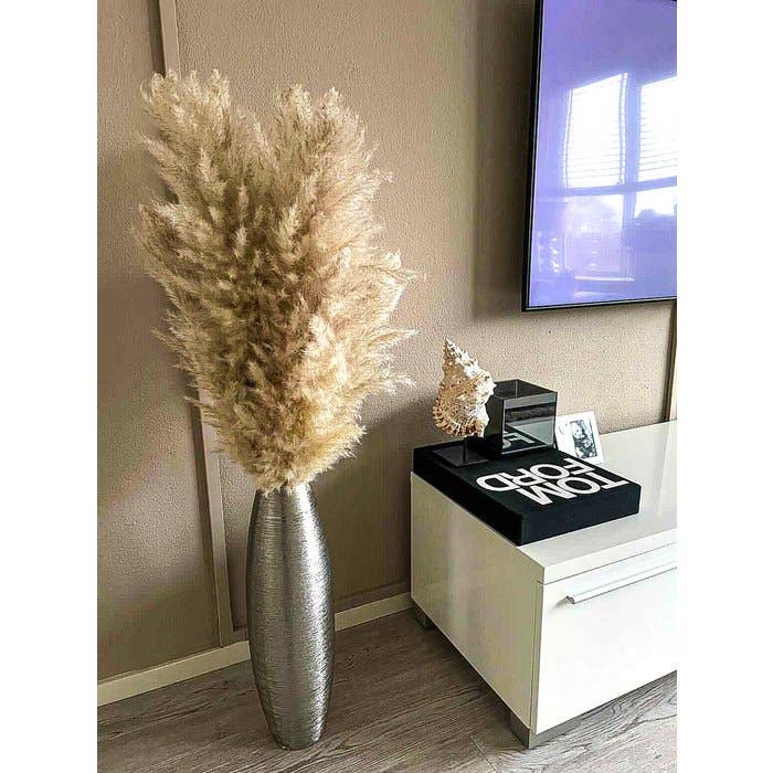 Named after the Dutch queen. The MAXIMA is grown sustainable in the Netherlands and is being shipped all over the world. This one is unknow big and handmade. This Pampas is made of 15 x the LUXE EXTRA FLUFFY. This makes it 15 x bigger. Total length of 180 cm and the plume itself is +/- 75 cm.