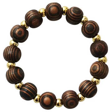 Wear the ancient stone of courage with Kheops International's 6mm Tiger Eye Round Bead Elastic Bracelet with Brass colored Accents.