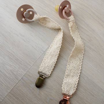 Your little one will never lose their dummy again with one of these super cute, safe and practical soother clips. Made from 100% cotton and finished with a stylish wood clip, our soother clips have been tested and meets all Australian safety standards. The clip can easily be attached to babys clothing, while the loop holds the soother on the other side. Available in 5 different colors, we have a soother holder to go with any outfit! Features: * Suitable for newborn+ * Fits almost all dummies * Measurement: 22.5cm length (complies with Australian safety standards) * Material: 100% cotton, wood clip with metal fastener * Eco-friendly and BPA, PVC and Latex Free Care: * Hand wash cotton strap in warm soapy water and air dry ** Do not let baby sleep with the soother chain or use as a toy. Check the clip before each use to ensure everything is intact as should be. Do not use if any signs of wear or tear are visible.