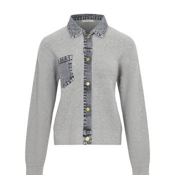 A unique hybrid knit jacket that blends cozy texture with chic denim detailing. The Denim Layered Pocket Knit Jacket features a soft, warm knit body combined with denim accents along the collar, placket, and chest pocket—creating a stylish layered look without the bulk. Thoughtfully designed to elevate everyday outfits, this piece pairs effortlessly with skirts, denim, trousers, and wide-leg pants. The knit offers a comfortable stretch and gentle warmth, while the denim trim adds structure and a modern twist. It’s the perfect statement knit for transitional seasons and casual chic styling. Proudly made in Korea with attention to detail and quality craftsmanship. Features Denim layered collar, placket & pocket for a built-in styled look Soft, warm knit texture that’s comfortable for all-day wear Snap-button closure for easy on/off Balanced slim–relaxed silhouette for effortless styling A standout piece that instantly upgrades simple outfits Colors Ivory Gray Navy