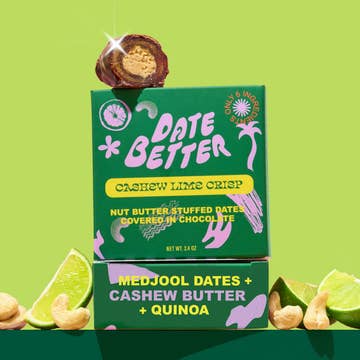 Cashew Lime Crunch – Dark Chocolate Covered Dates with Cashew Butter, Lime & Quinoa Bright, bold, and a little bit unexpected, Cashew Lime Crunch brings major vacation energy to your snack aisle. Creamy cashew butter infused with zesty lime and toasted quinoa is tucked inside soft Medjool dates, dipped in 85% dark chocolate. It’s tart, rich, and totally addictive. ✨ Vegan, gluten-free, dairy-free ✨ Less than 1g added sugar ✨ Organic fair-trade dark chocolate ✨ Crunchy, citrusy, and craveable Perfect for: Summer gifting, Fourth of July & Labor Day weekends Citrus lovers Beach bags, poolside snacks, & road trip fuel Holiday hostess gifts & seasonal samplers Retailers seeking something different that pops off the shelf Why Retailers Love It: Refreshing citrus-forward profile stands out Clean-label tropical treat Great for seasonal displays & summer bundles Unique addition to “better-for-you” chocolate sets Lime chocolate snack Summer citrus candy Clean tropical snack