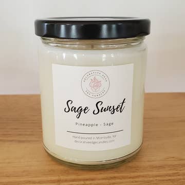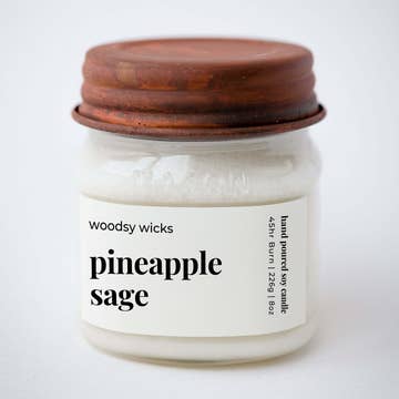 Hand-poured 100% soy wax candle with cotton wick - lead and zinc free. Paraffin and palm free. Burn time is between 30Â hours for the 9 oz. jar (filled 7 oz)Â Bliss - This fresh and sweet fragrance is perfectly blended with exotic flowers and rich fruit and grounded with mossy and wood base notes to dazzle your senses and have you feeling bliss in your beautiful! Pineapple Sage - Let the tropical blend of pineapple, sage, and green leaves take you to your favorite tropical destination. Top notes of pineapple accented with a heart of green leaves, anise, and palm that add depth to this beautiful scent.