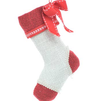 Stuff the farmhouse Christmas tree with the delightful Natural Christmas Stocking Ornament. This cute stuffed ornament features a stocking shape in natural-colored fabric with a white fleece cuff. It measures 4.5" high by 3.5" wide by 1" deep and has a string hanger at the top. These stockings look great on the tree or will add a little holiday cheer to drawer pulls or mantle hooks.