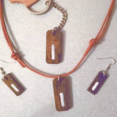 This wholesale starter bundle has all items packed and retail ready, this great set allows you the opportunity to find the best items to fit your store and offer your customers so many options, we know they will love these momentos. Taster Bundle includes; Handmade 50 pieces per order; 4 micro stud earrings in a bottle (3 different combinations) NEW for 2026!! 4 White Blaze resin Necklaces on waxed cord 12 AT Resin keychains (mixed colors) 6 AT dangle earrings, resin on sterling silver (mixed colors) 6 White Blaze resin drop earrings on sterling silver fixings 10 AT hang tag /symbol stud earrings, sterling silver fixings (mixed colors) 8 AT pins designed on the hang tags (mixed colors) Total items retail for $850!!! (Display rack not included) This is a one of a kind item, ready to ship. Each piece is unique and minor inconsistences such as thickness colour mottle, making each item truly one of a kind. Recycle packaging always sourced for use.