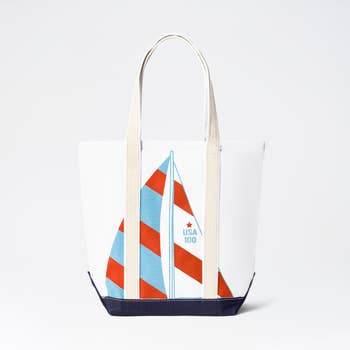 This canvas tote bag is the perfect blend of style and practicality, designed for versatile use. Its sturdy construction features a classic cream canvas base adorned with vibrant nautical prints, including navy blue anchors and ship wheels, evoking a timeless maritime charm. The bold red contrasting trim and straps add a lively pop of color, making it both functional and eye-catching. Spacious and durable, this tote is ideal for a variety of occasions—whether you're heading to the market, enjoying a picnic, spending a day at the beach, or embracing lake life. The comfortable straps ensure easy carrying, and the open-top design allows quick access to your essentials. A must-have accessory for those who love both style and utility in their everyday adventures! Material: 100% Cotton Size: 17" w x 15" h x 7.5" d Check out the small size tote # 5DG78010
