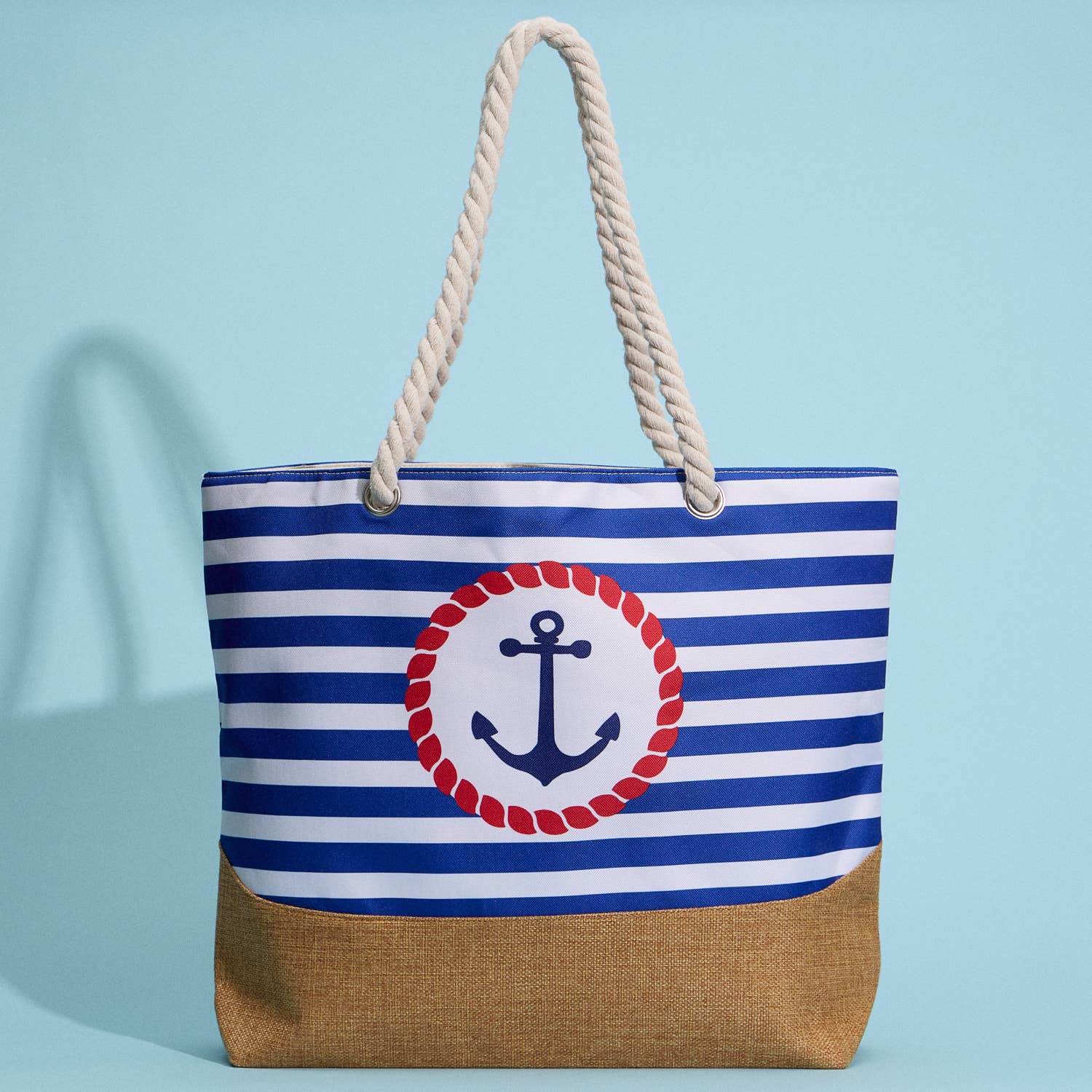 Wholesale Large Size Nautical Theme Print Everywhere-Carry Canvas Tote - Beach Bag