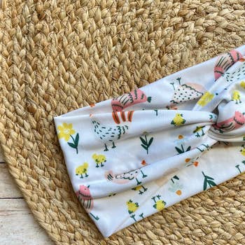 Soft and comfy brushed poly/spandex knit twist style headbands uniquely created from fabric designed and sewn in our own studios. Wear for sports, work, or as a fashion statement. Thousands of designs in the Treasured Bands Collection by Treasured Haven. One size fits most beautifully and can be worn in multiple ways - the twist in front, twist under in the back for a wide band, folded in half or thirds for a narrow look, or can also be worn Boho bandana style over the hair... other creative uses include as earmuffs, nap mask, face mask, hatbands, and more. Band width approximately 3.5" double thickness - designs can vary slightly. Poly/Spandex. Machine or Hand Wash Cool Water, Line Dry. Comes with convenient Display Hang Card.