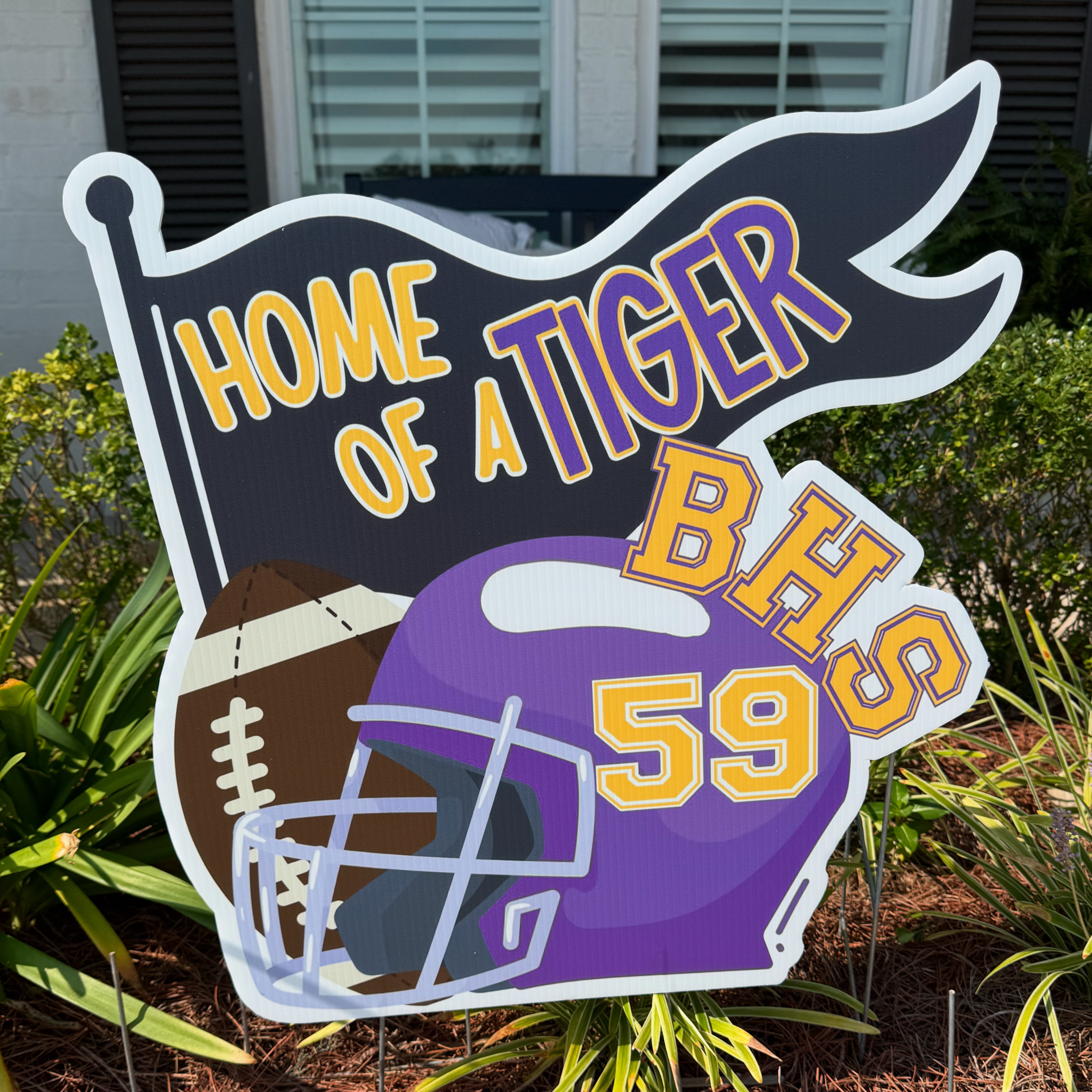 Make a big statement (quite literally) with our Cheer megaphone yard sign. Show off your school spirit and let everyone know who's the loudest and proudest at the game. Our weather-resistant material ensures your sign will stay put, rain or shine. Game on! Stake included ! Other color / mascot options available ! Size 21.5 x 12