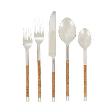 This 20-piece flatware set is crafted from high-quality 18/10 stainless steel, forming a beautiful combination of silver and gold. Its ergonomic design and graduated handles are stylish, while durable construction ensures your set will last. Perfect for your mealtime service for 4.