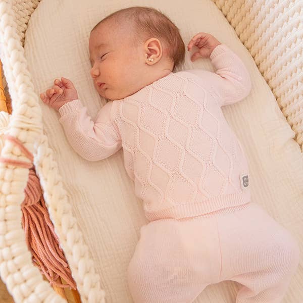 The Met set is made of 100% cotton to provide softness and comfort to the baby. It includes a sweater with an original diamond print and a high-waisted gaiter. Its soft colors and classic design make it an elegant and versatile alternative.
