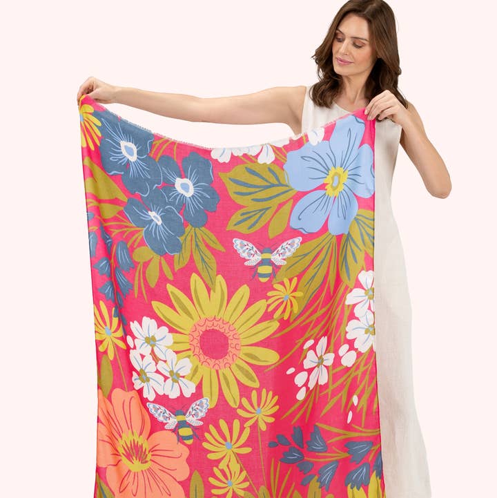 Everything about this is sugar sweet! Ideal for brightening up a dill winter, enjoy these sweet posies, or gift to someone special! 100% polyester. Cool hand wash only. 100x184cm. 100% Polyester. Cool hand wash only. Do not leave garment in suds. Do not bleach. Tumble dry, low. Do not iron. Do not dry clean.