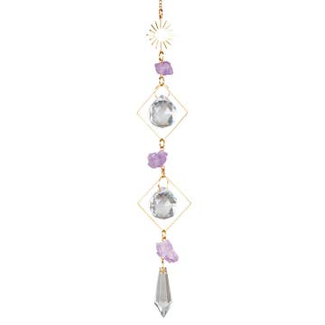 Brighten any journey with rainbows! The size may be petite but the rainbows bring big cheer. Inspired by our best-selling Suncatcher collection. Hang in your car to commute in prismatic color or use the provided suction cup to hang from any window. • Materials: Brass with gold plating, crystal, suction cup with a metal hook and a chain extension for hanging. • Comes packed in muslin bag inside a box that tells meaning behind the item. • Suction cup with a metal hook included to easily attach to windows. • Chain extension can be used for hanging from rearview mirror. • Dimensions: 6.5" long x 2" wide • Indoor use only. Add a touch of nature-inspired spring decor to your home with a stunning suncatcher, perfect for brightening up your space in spring and summer. Makes for a wonderful birthday, graduation, or Mother's Day gift. Always drive safely and comply with local regulations.