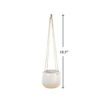 Measurement: This beautiful hanging planter features two sizes—4.75"D and 6"D—perfect for showcasing a variety of your favorite plants. Material: Made from durable, high-quality materials, the artisanal hanging planter is designed to last, providing a stylish home for your greenery. Design: With its charming bohemian design, this planter features unique textures and intricate details that add a touch of artistry and character to any space. Versatile: Ideal for indoor and outdoor use, this hanging planter can be displayed in kitchens, living rooms, or patios, effortlessly enhancing your decor. Display: Elevate your plant display by hanging it from ceilings, walls, or hooks, creating a stunning visual effect that draws attention to your beautiful plants.