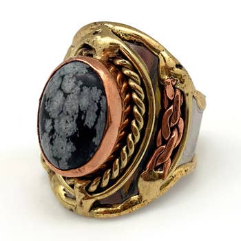 925 Sterling Silver Bold Black Druzy Statement Ring Make a fearless style statement with this 925 Sterling Silver Bold Black Druzy Statement Ring. Featuring a striking black druzy gemstone, this ring captures attention with its natural shimmer and crystal texture — a bold contrast to the sleek sterling silver setting. Each druzy stone is unique in its sparkle and formation, making every ring one-of-a-kind. Known for enhancing creativity, strength, and inner confidence, black druzy adds both aesthetic and energetic depth to your jewelry collection. Key Features: * Material: 925 Sterling Silver * Gemstone: Natural Black Druzy * Design: Bold, wide-band statement ring with organic texture * Handmade: Artisan-crafted for a unique and powerful finish * Perfect For: Bold looks, glam lovers, or those drawn to natural, edgy stones