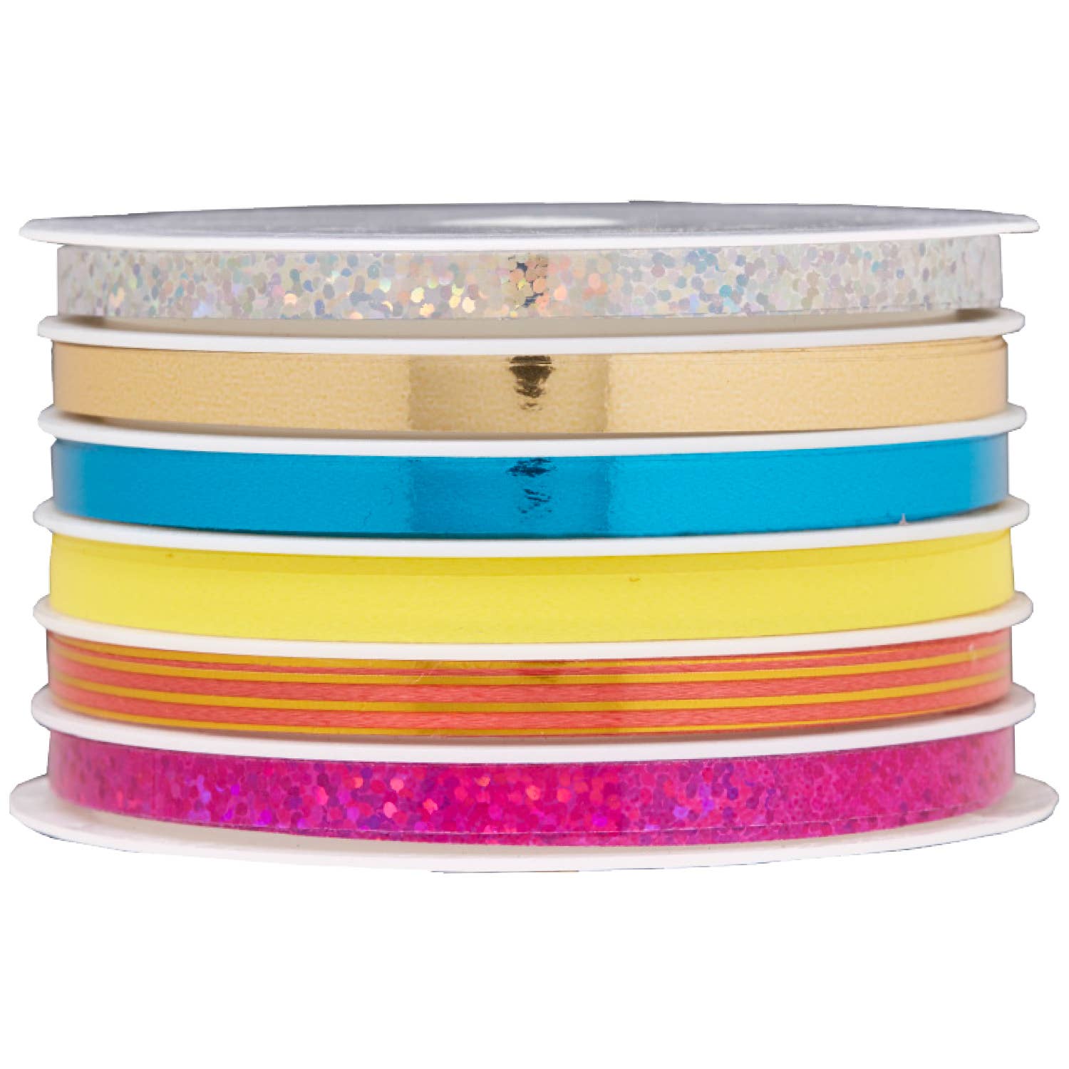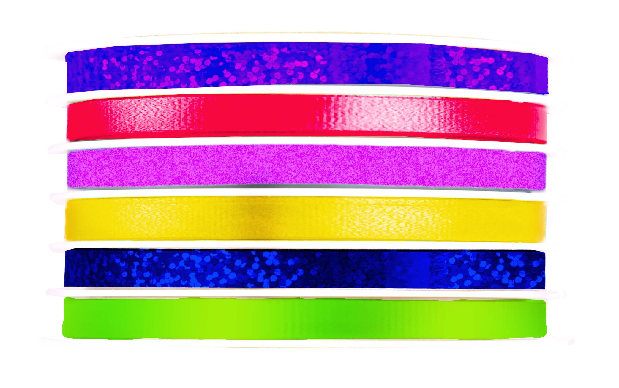 4 channel White, Black, Holographic Gold, Glitter Silver (uncrimped) 3/8" X 100'