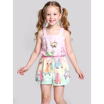 AnnLoren perfect fashion forward big girl tween and little girls style jumpsuit. Trendy and comfortable rompers with pocket for any season and occasion. Original Magical Girls Unicorns and Rainbows print. Large Pink Swirl Ruffle trimmed neckline. Criss Cross stretchy straps in the back.Rainbow trim on shorts. Elastic waist line with bow at center. Very flattering and comfortable. Can be dressed up or for a casual day. This will sure to be a favorite! Made with 95% Egyptian Cotton 5% Lycra stretch knit. Machine Washable.