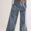 Ladies Elastic Waist Pocket Wide Leg Denim Pants