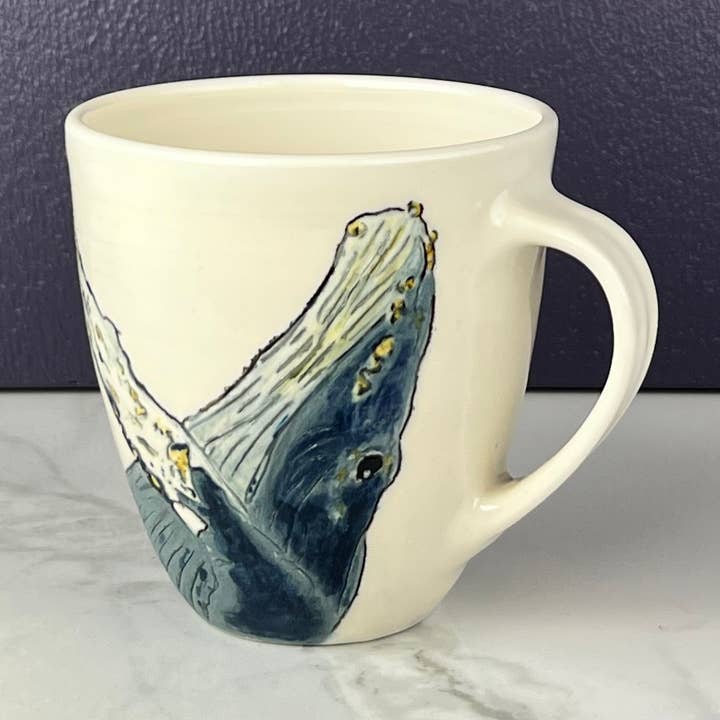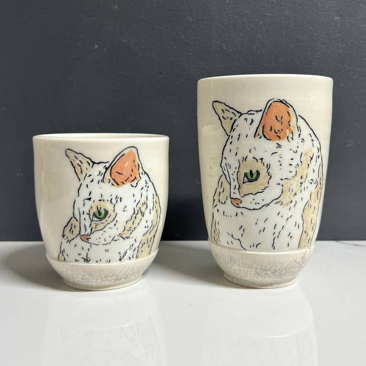 This is a handmade item; it is wheel thrown with my own glaze formulation on a porcelain clay body. Multiples can be ordered. Please make sure to note the amount ordered so you can set accurate expectations for when your order will be shipped as the product can take 4-6 weeks for production. The tumblers only come in a natural white color only. I consider a right handed mug to be a mug held in your right hand with the image facing you. A left handed mug held in your left hand would have the image facing you. Food safe, microwave safe and dishwasher safe. *When making large batches/orders, I try my best to make the work as uniform as possible to each other, but as they are made to order, the pieces can vary ever so slightly.