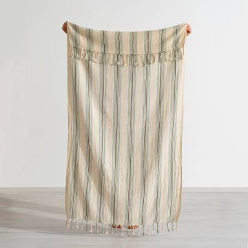 The design evokes a variety of associations, taking its name from the aerial view of paddy fields with different shades of vegetation. The size of this towel is ideal for various recreational activities such as beach trips, picnics, and saunas. * Made in Berlin, Germany * 100% Organic Cotton * 100 × 170 cm * 470 GSM (grams per square meter)