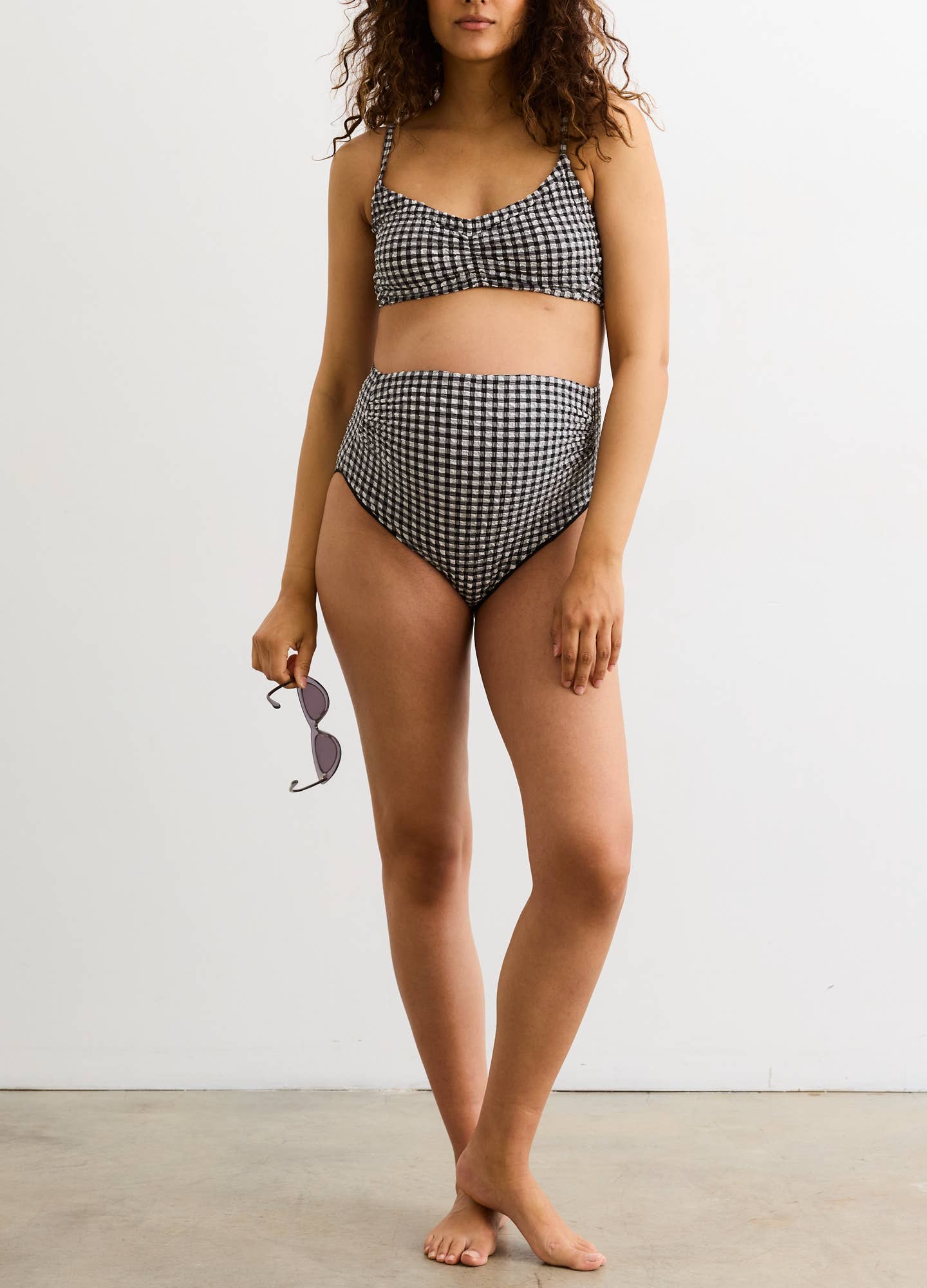 This swimsuit is part of our mommy + me matching collection! It has matching girl and boy suits so you can twin with your little ones!  Our Women's Basic Bikini features thick crossed straps and removable pads for customizable comfort. The bottoms are high waisted and full coverage. Its fabric is UPF 50+ for superior sun protection. Plus, its 87% nylon and 13% spandex blend allows for the perfect fit and stretch. FITS TRUE TO SIZE Fabric is UPF 50+ Care: Remove pads and machine wash on gentle cold. Lay flat to dry. Made of 87% nylon 13% spandex