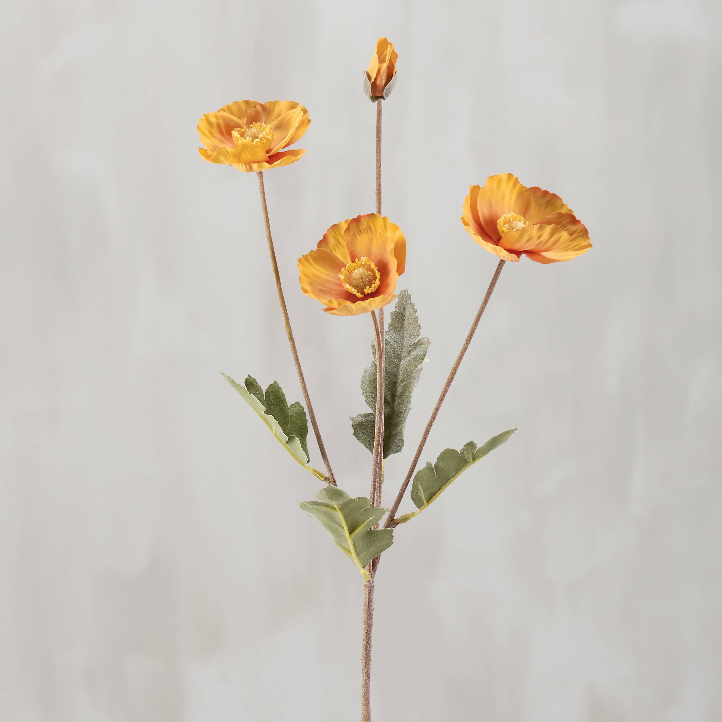 *Each spray has three blooming poppies (2''w), and one poppy bud; *The stem is flocked in green; *Can be used as decorative flowers or craft flowers; *Four colors are available, light pink, champagne, light blue and dark blue; Style your faux floral arrangements and wedding flower bouquets with beautiful silk flowers that are second best to nature's botanicals. This adorable artificial poppy stem expresses that playful and whimsical feel that fresh poppies exude.