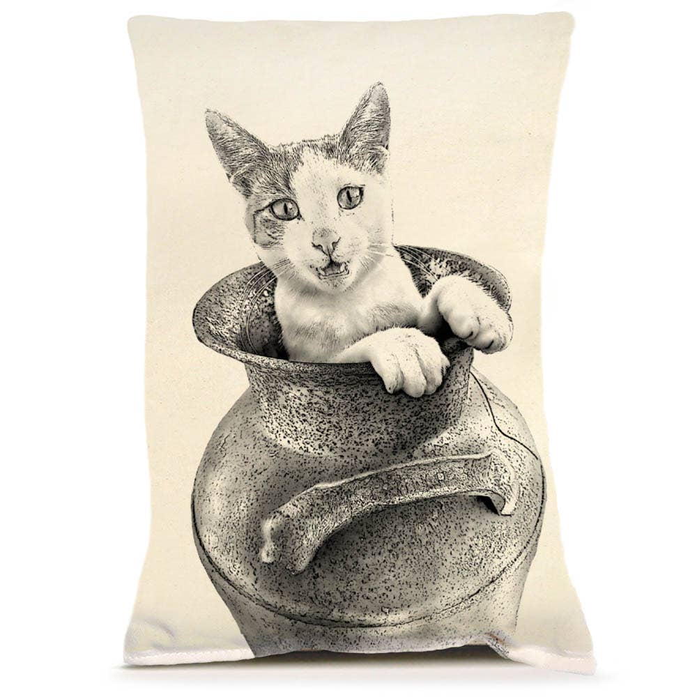 Made in U.S.A. Screen printed and sewn in Bucks County, PA 100% Natural Cotton Canvas with polyester fiber fill. Approximately 16" x 16" Spot clean