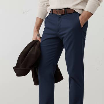 Our men's pants are incredibly versatile, perfect for transitioning from meetings to travel while offering the comfort of sweatpants. Materials + Construction: - 100% PTT Polyester fibers. - Premium grade Air Stitch™ nylon thread. - 4-way stretch. - Soft-peach finish. - Wrinkle resistant. - Water repellant and stain resistant. - Doesn't shrink after washing. - Doesn't warp or bag out. - Sourced from Japan. Fit: - Curved waist design. - Two deep front pockets. - Hidden zippered pocket inside front right pocket. - Smaller open pocket inside front left pocket. - Two zippered rear pockets. - Reflective tape inside both leg openings. - Black metal zippers (chrome in Cream color). Care: - Wash in a regular cycle with cold water. - Do not use softeners or bleach. - Tumble dry in a low heat setting or air dry. Sustainability: - Recycled material packaging. Our customers can't get enough of our mens pants, and we’re confident yours will feel the same way!