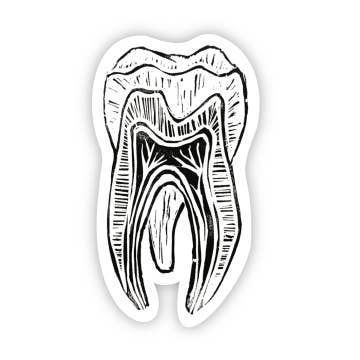 - Sticker measures 2.7" x 1.9" - Included in Creative Anxiety Society - Sticker Pack - Thick, durable vinyl - Protection from scratches - Water & sunlight resistant Add a quirky twist to your space with the "Chattering Teeth" sticker. This unique design features a set of animated teeth clenching a pencil, symbolizing the jittery sparks of creative anxiety. Compact yet impactful, this sticker is perfect for personalizing laptops, sketchbooks, or any creative workspace.