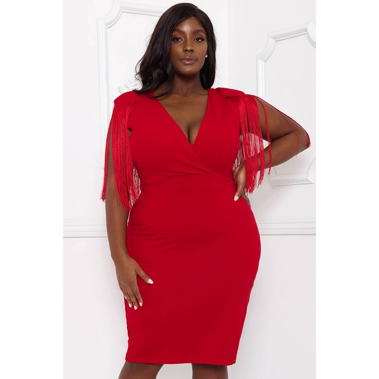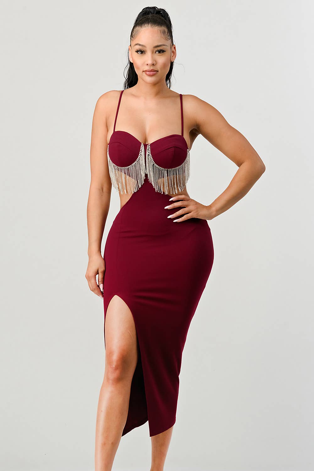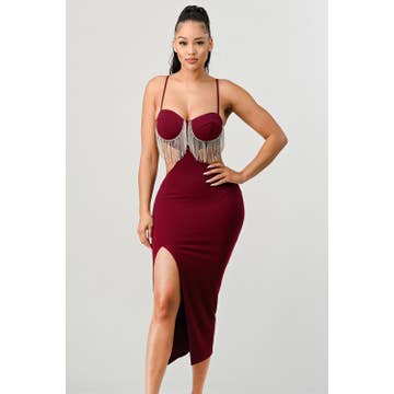 Style # BD5231 Make a statement with this bold sleeveless midi dress featuring an eye-catching fringe hem that adds movement and drama to your look. The sleek, body-hugging fit accentuates your curves, while the soft, stretchy fabric ensures all-day comfort. Whether you're stepping out for a night on the town or looking to turn heads at a special event, this dress is a showstopper. Style it with your favorite heels and minimal accessories to let the fringe detail shine. -Sleeveless design for a sleek, modern look -Stretchy, figure-hugging fit for a flattering silhouette -Fringe hem detailing for added flair and movement -Midi length that balances sophistication and boldness -Soft, comfortable fabric perfect for all-day wear Sleeveless fringe dress, midi bodycon dress, party dress with fringe, statement midi dress, evening dress, form-fitting midi, trendy fringe dress, chic sleeveless dress, fashionable midi dress Model is 5' 8" and wearing a S.