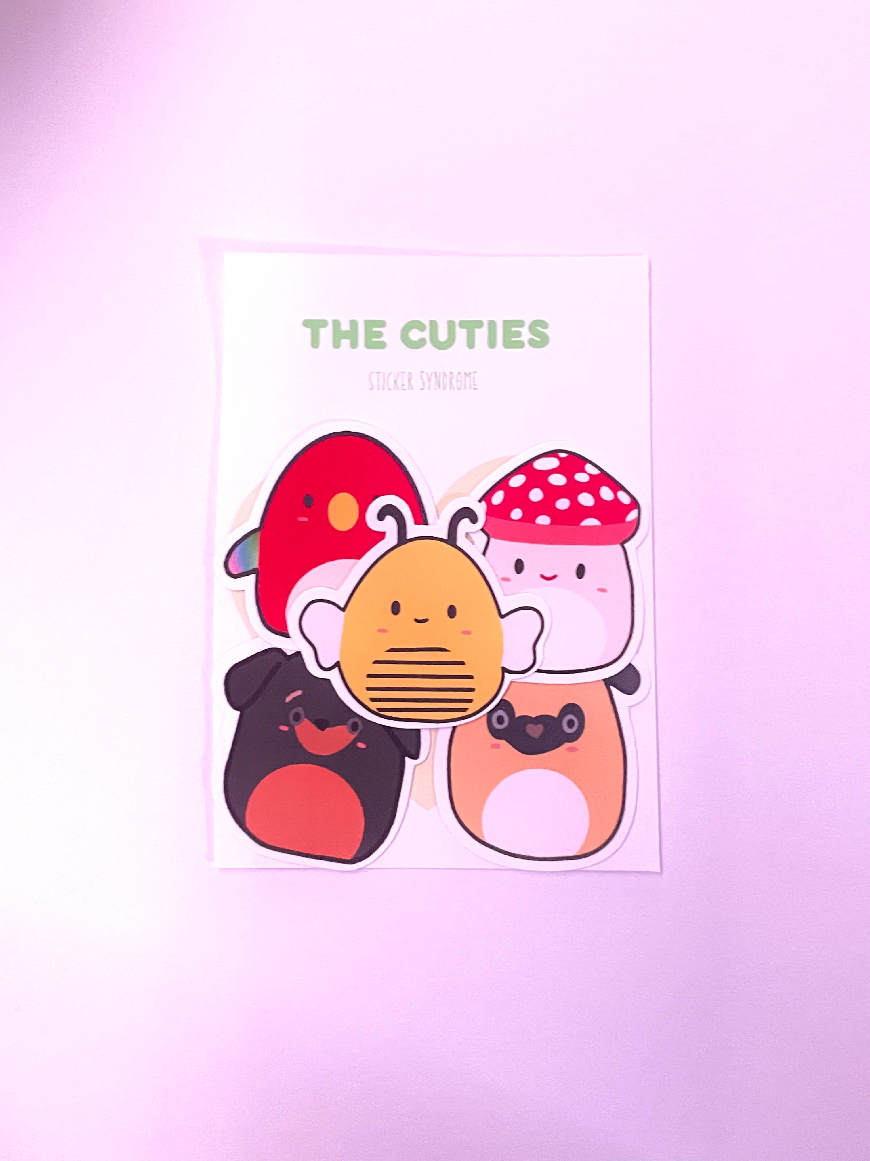 Adorable Squishmallow Stickers! This adorable squishmallows pack includes 5 stickers that are approximately 2in x 2in. They are finished with different finishes! Prefect for those who love the Squishmallow Plushies by Kellytoy or for those who love adorable stickers! They are a great decoration for anything you'd like and are super sticky! They are waterproof & made out of vinyl sticker paper!