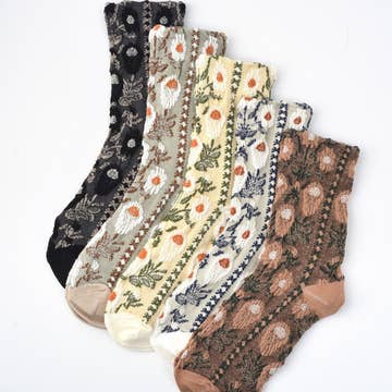 SKU: KRSK395-BLACK Made in South Korea Aesthetic: Casual and Retro / vintage Care Instructions: Machine wash Fit: Contemporary and Missy Occasion Theme: Everyday Pattern: Floral Sock Length: Crew Sock Style: Grip Product Language: English Fabric: 80% Cotton ,10% Spandex, 10%Polyester Weight: 28.35 g (1 oz)