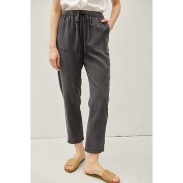 They are stylish, loose-fitting, high-waisted straight trousers made from a cotton-linen blend, with a flowy drape.