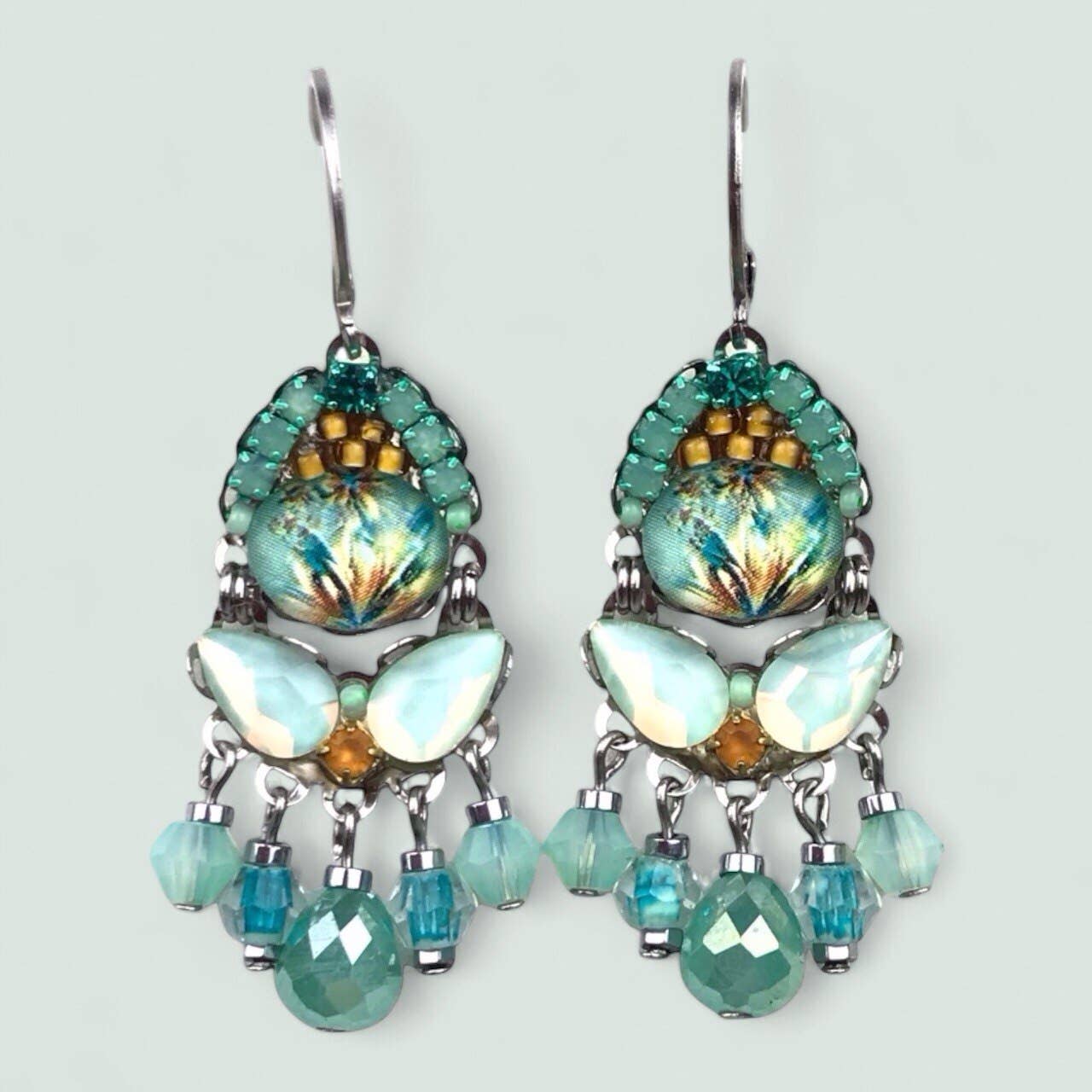 Handmade earrings with faceted crystals in soft colors on a stainless steel base, medium size, 4.5 cm long, lightweight, closed hook clasp. Ideal for everyday wear to complete the chic look.