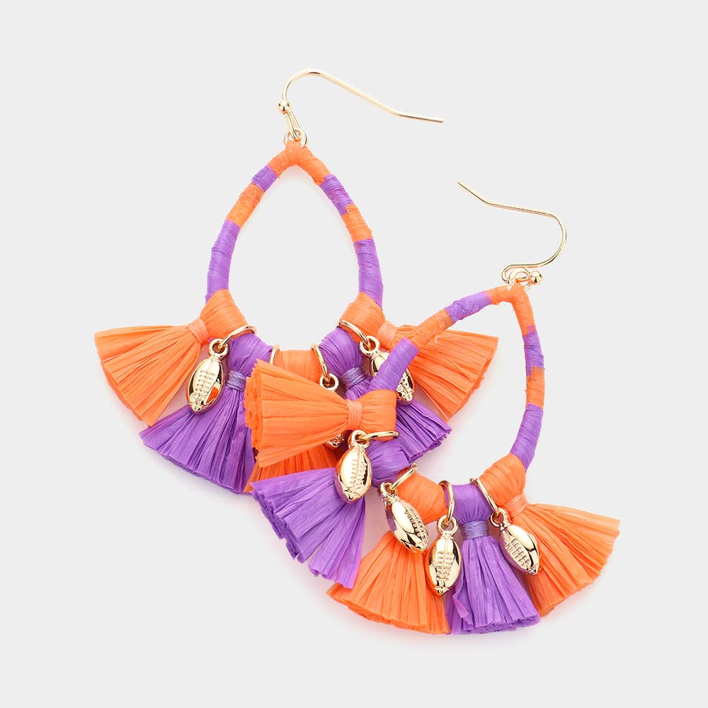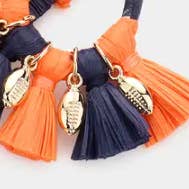 • Size : 1.5" X 3.25" • Fish Hook Back • Lead and Nickel Compliant Get ready to cheer in style with these Game Day Triple Tassel Layered Dangle Earrings. Featuring stacked tassels in bold team-inspired colors, these earrings bring spirited movement and playful flair to any game day outfit. Lightweight and festive—perfect for tailgates, pep rallies, or spirited boutique displays.