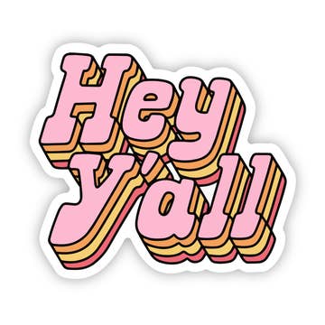 This is a brand new design for all my southern gals. Featuring a loopy ‘hey y’all’ on top of a lipstick kiss. This sticker is approximately 3 inches by 2.5 inches at its widest points. This is printed on a durable, waterproof, weatherproof vinyl sticker paper, however if placing the sticker on a Stanley/water bottle/etc. I do still recommend handwashing.