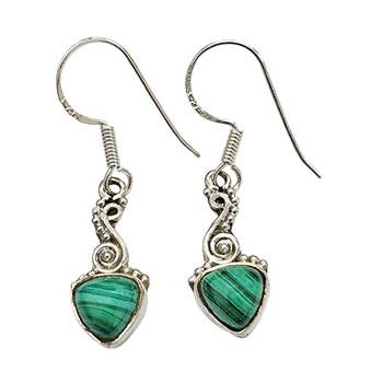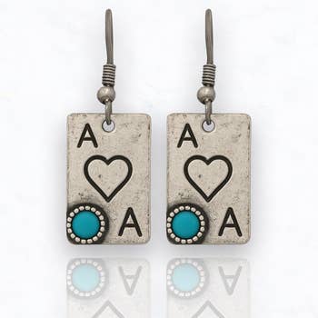 Fun, lightweight, Easy to wear. Silver heart earrings are topped with silver, wire wrapped, genuine turquoise I love to top my earrings with my signature "organic knot". For me it's like leaving my thumbprint on every piece. A signature that says this piece is handcrafted, and that makes every single piece one of a kind.*Please note, every piece of jewelry is handcrafted and therefore will vary slightly from photos and from piece to piece* Ear wire is surgical steel french hook, lead and nickel free.. A one of a kind treasure. Colors may vary. Earrings come carded on a 2” x 2” Casa Kira branded Earring card with plastic hang tag. -Display: Casa Kira provides bio signs, table tents and gift cards upon request. -We provide a complimentary acrylic earring spinner rack with purchase of starter kits: sku# E-ast-32 or #E-ast-48. Recks hold 48 or 32 pair & have a 4” x 4" footprint